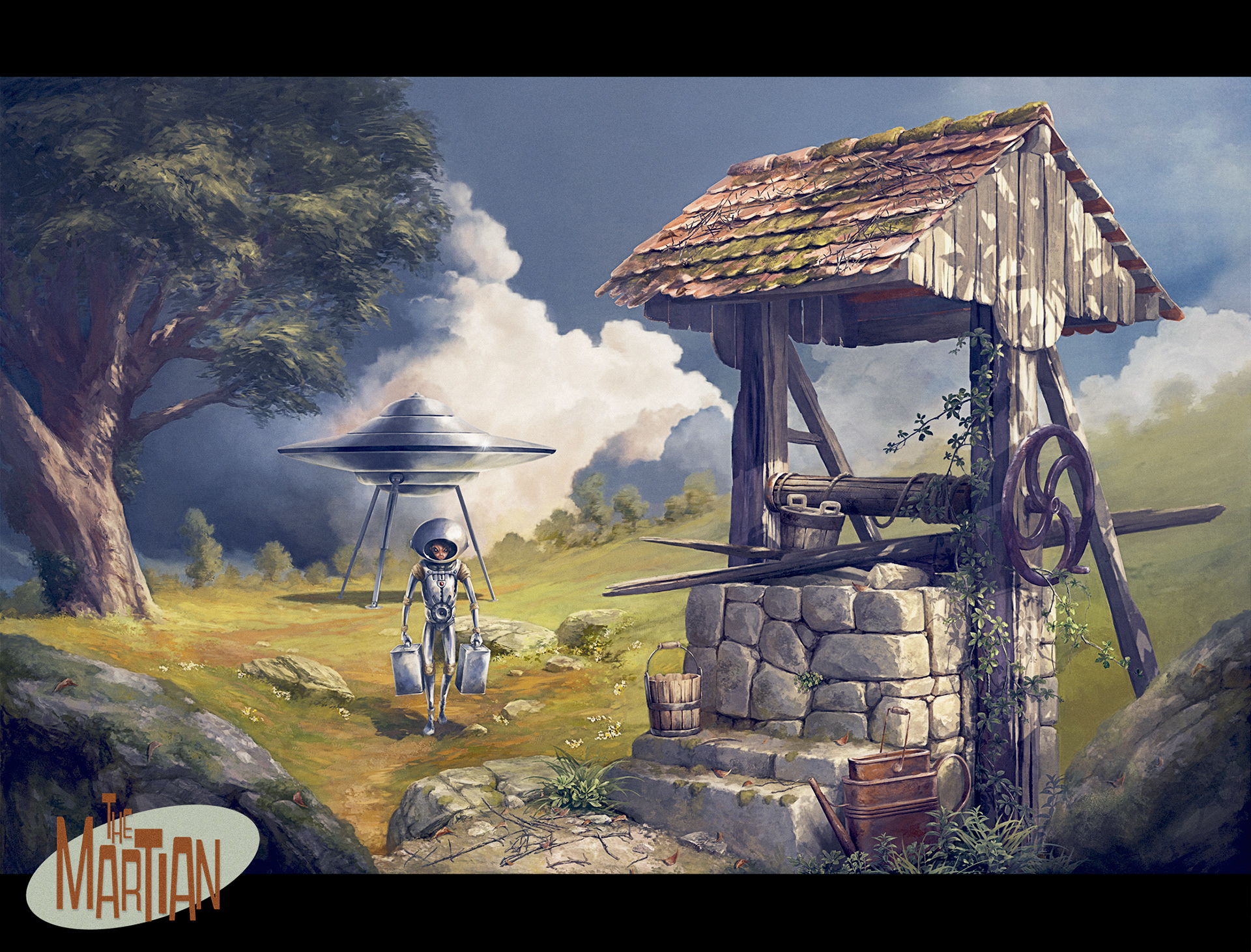 Directly inspired by a Star Wars spaceship, this artwork depicts a meeting one more time, between natives and an intrusive and threatening element.